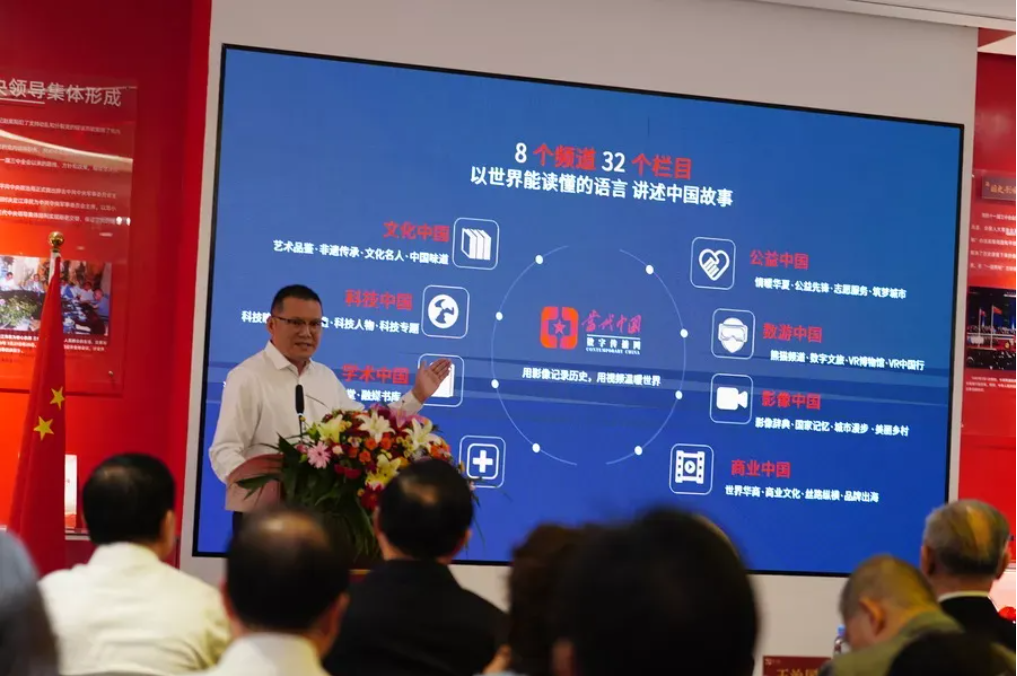 2024年9月26日,当代中国数字传播网(www.cccntv.com)正式上线发布会在位于北京市房山区的中华人民共和国国史教育基地隆重举行。中央档案馆原馆长、国家档案局原局长杨冬权,全国工商联原副主席王治国,学习出版社原社长董俊山,中国社会科学院研究生院原院长黄晓勇出席并致辞;世界生产率科学院院士、国际院士联合体主席孙成,中华人民共和国国史学会副秘书长王晓伟等受邀出席。